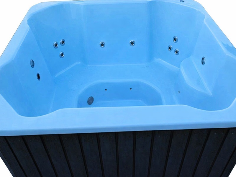 – stiklo plastiko kubilas ilgis 2,05m, plotis 1,75m, skirtas 6 – 7 asmenims, gylis 0,90m (vidaus spalva mėlyna, pilka, balta, granitas)
